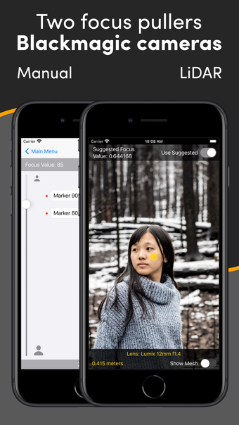Focus Puller เป็นแอปฟรีที่ออกแบบสำหรับผู้ใช้ iPhone โดยพัฒนาโดย Robert Meakin มันเป็นเครื่องมือสื่อมัลติมีเดียที่ปรับท่าทางสำหรับกล้อง Blackmagic ใด ๆ ที่มีการเชื่อมต่อทางบลูทูธและเลนส์ที่เข้ากันได้ แอปนี้มีวิธีควบคุมโฟกัสสองวิธีที่แตกต่างกัน: โหมดควบคุมด้วยมือและ LiDAR Focus Control